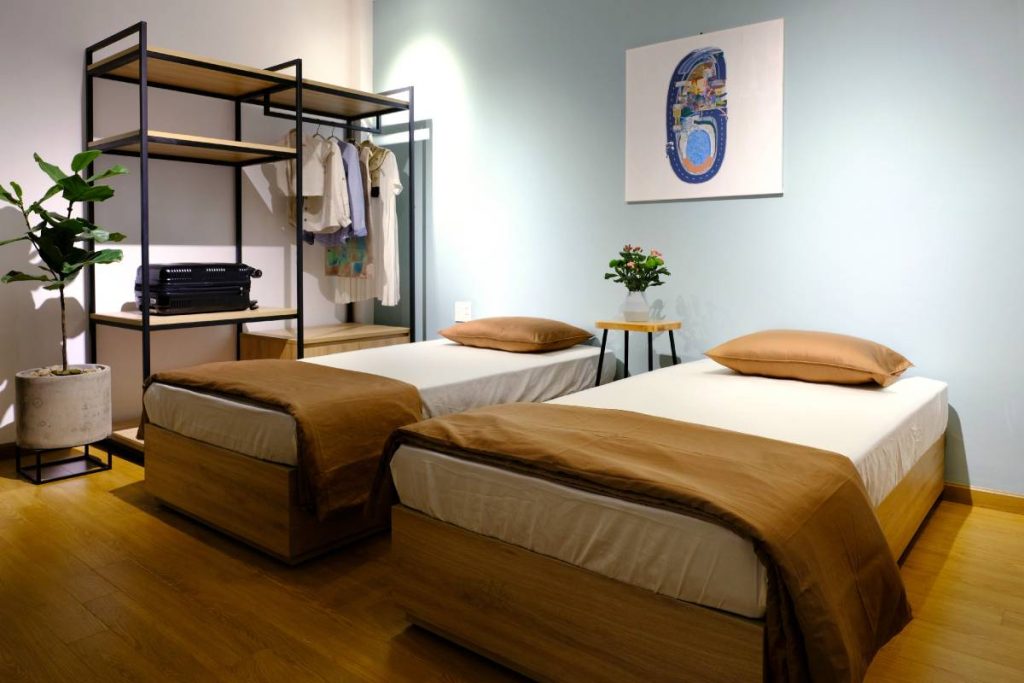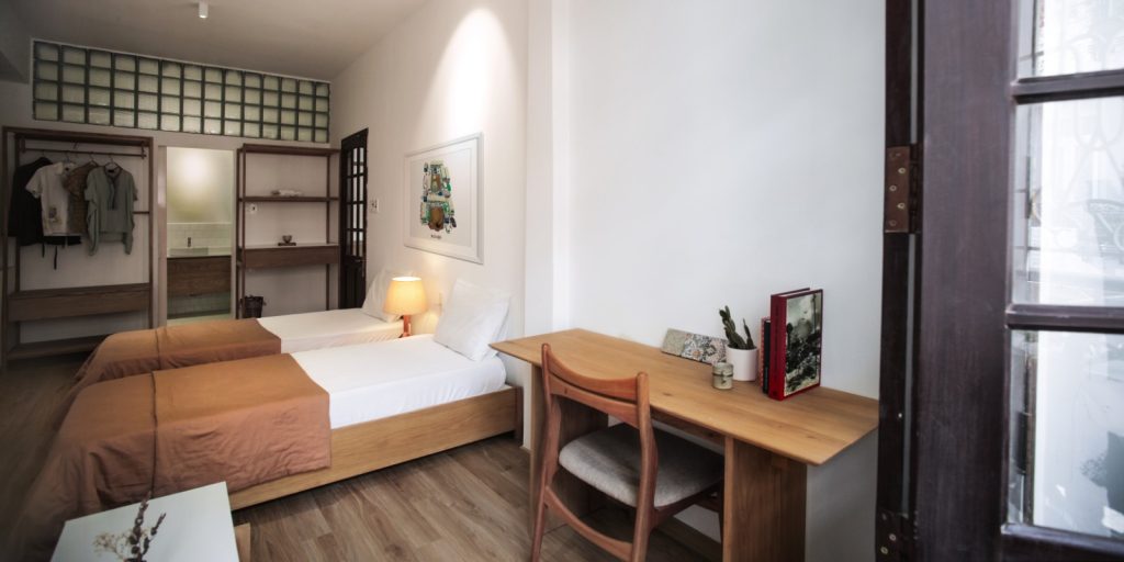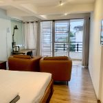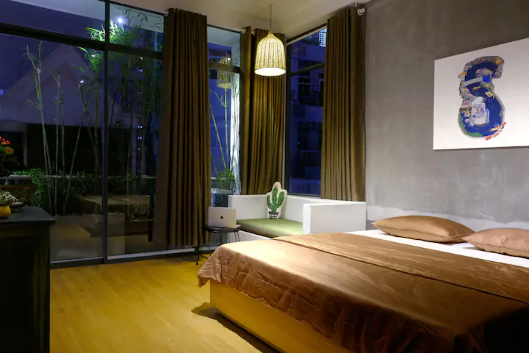 Aa luxurious and spacious accommodation option for hotel guests. This suite is designed with a garden theme, and features a private patio with outdoor seating. The suite also includes a king-sized bed.